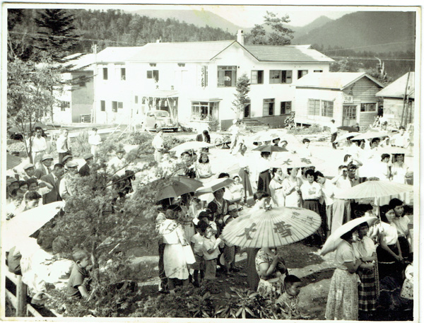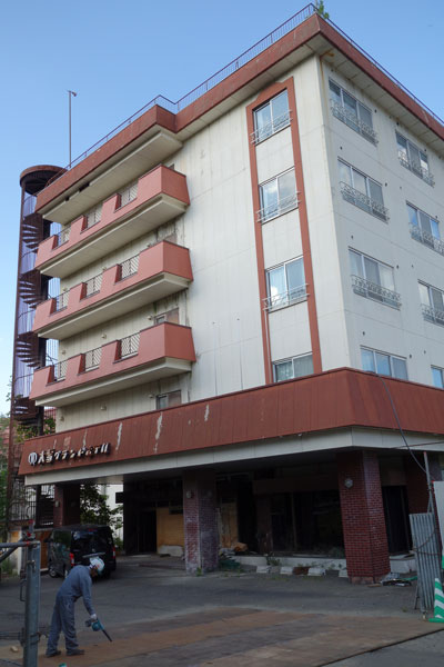 現在公園になっている所は「大雪グランドホテル」跡地でした。糠平最大だった120室の客室には多くの旅行者が訪れました。ここで使われていた温泉を活用し、後に足湯へ生まれ変わります。 取り壊し直前。廃業後12年間廃墟として放置されていました。 その前の時代の建物。 更に前の初代の建物。「旅館大雪」時代。番傘がおしゃれですね。