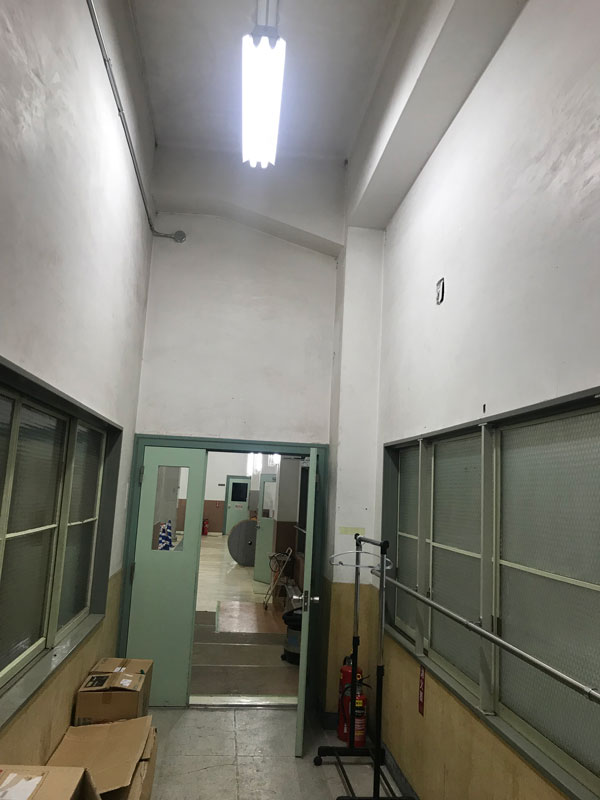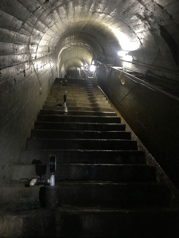 ダム内部の点検通路(監査廊)。気温は年間通して10度前後。
