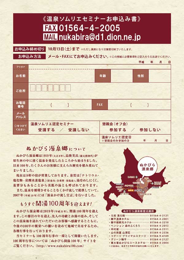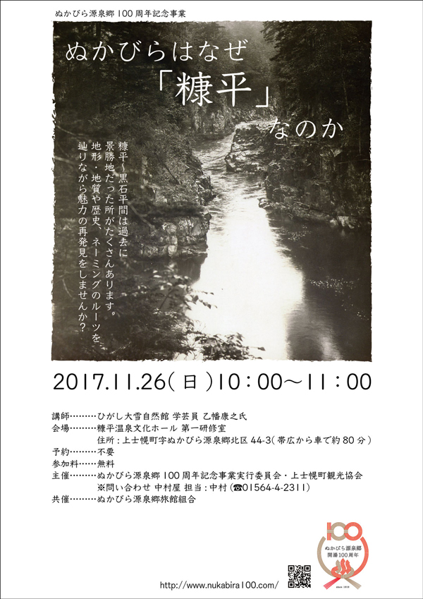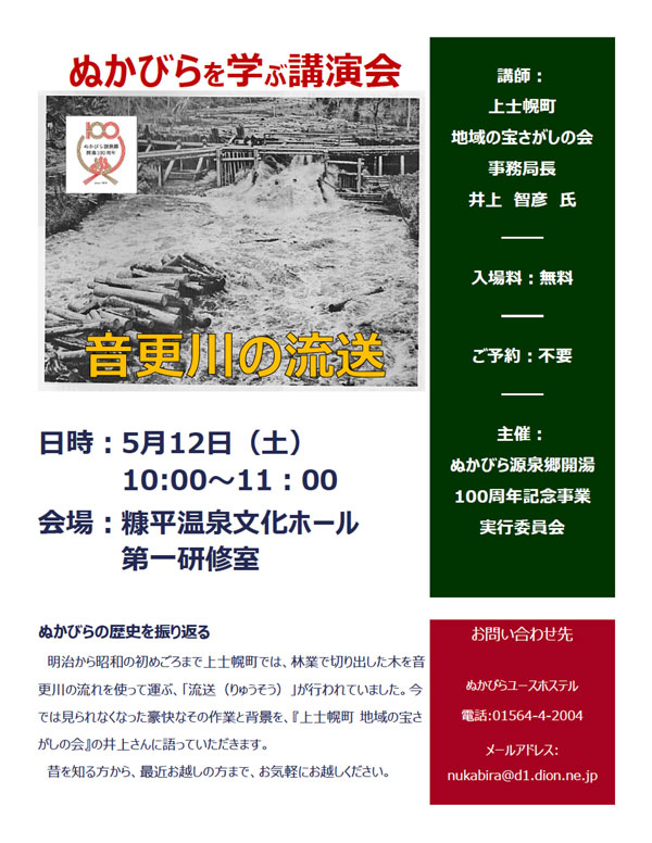 ・お問い合わせ先:ぬかびら源泉郷開湯100周年記念実行委員会