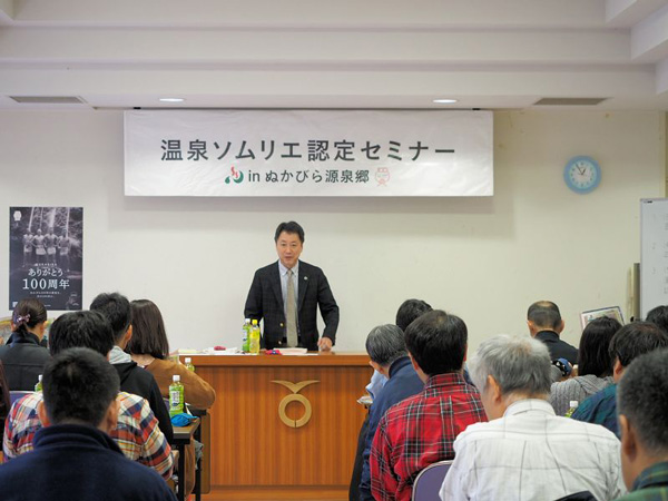 「温泉ソムリエ師範」のさとう努さんから効能や入浴法、温泉の楽しさ、大切さを学びました。