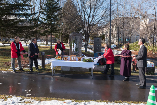 - ぬかびら源泉郷開拓の祖 島隆美功労碑の移設完了の除幕式と、100周年記念植樹を行いました。